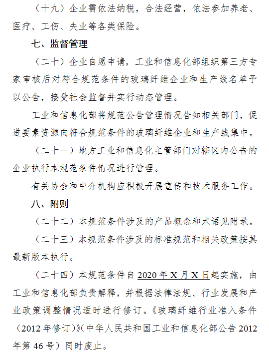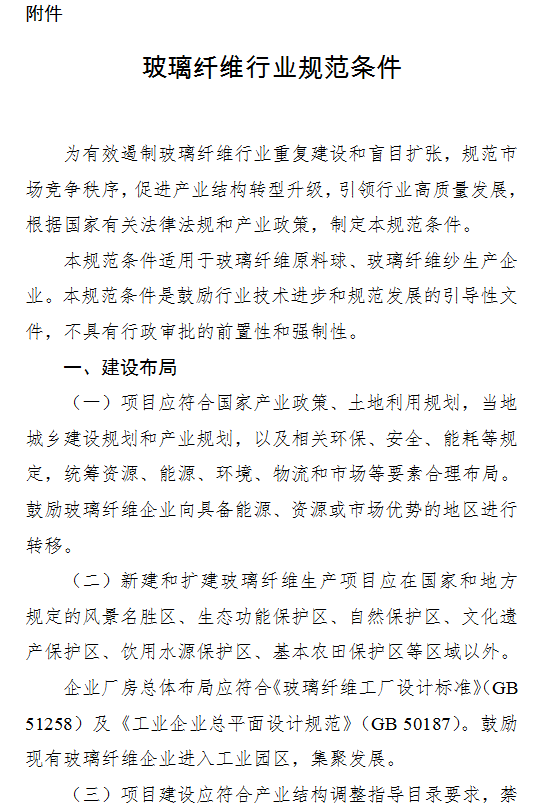据工业和信息化部消息,为有效遏制玻璃纤维行业重复建设和盲目扩张,规范市场竞争秩序,促进产业结构转型升级,引领行业高质量发展,根据国家有关法律法规和产业政策,制定《玻璃纤维行业规范条件》。