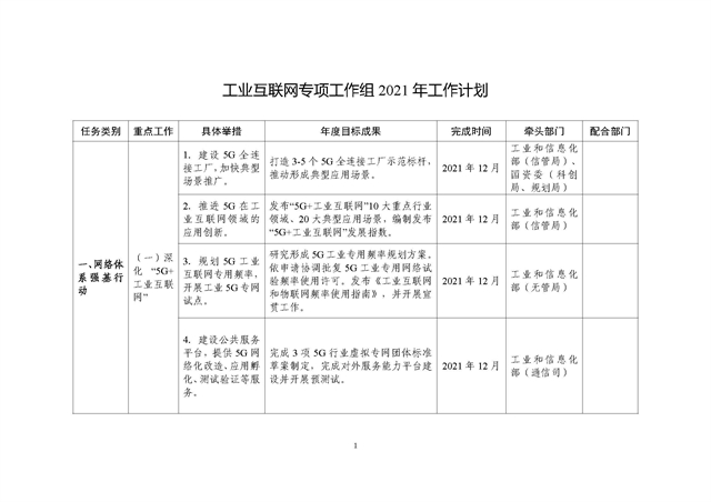工信部印发《工业互联网专项工作组2021年工作计划》