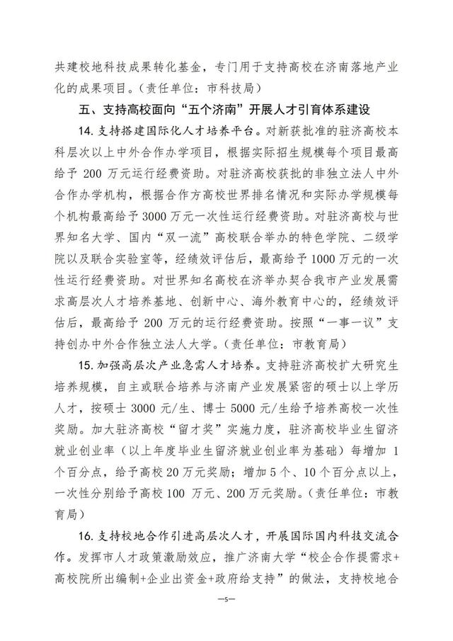 根据济南市委、市政府工作安排,市科技局与市教育局联合起草了《关于加快驻济高校科技成果转化 深化市校融合发展战略的若干政策措施(征求意见稿)》,政策有效期3年。