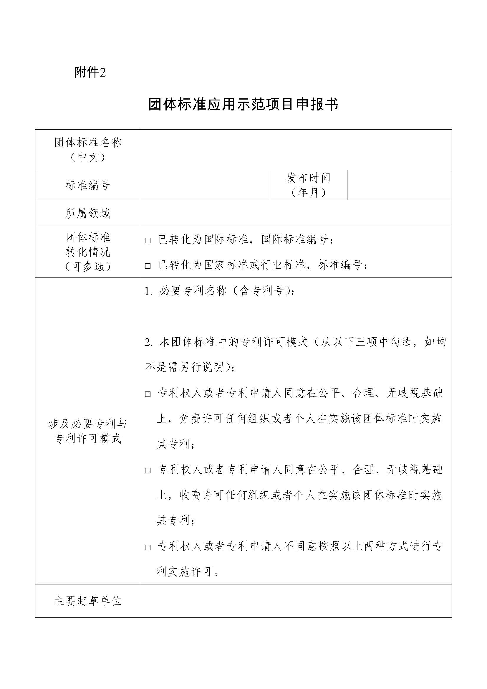 注:已申报过示范项目的团体标准(含修订、转化或互认)不得重复申请。