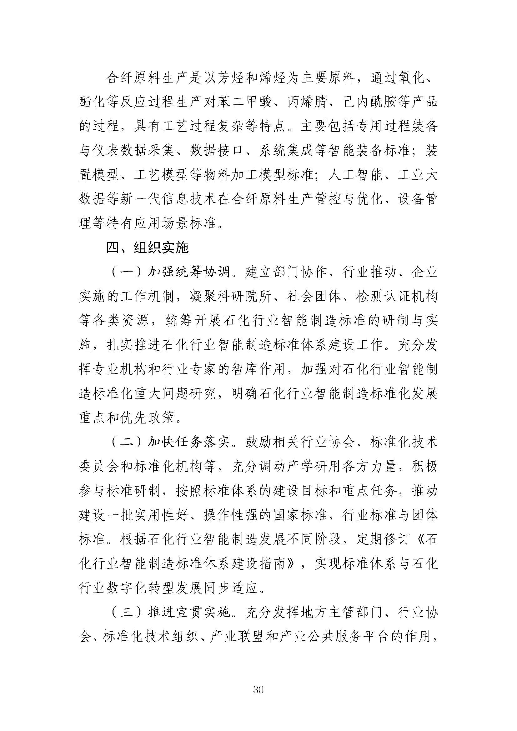 工信部办公厅印发石化行业智能制造标准体系建设指南(2022版)的通知。其中提出,到2025年,建立较为完善的石化行业智能制造标准体系,累计制修订30项以上石化行业重点标准,基本覆盖基础共性、石化关键数据及模型技术、石化关键应用技术等标准 对于原油加工等石化细分行业,优先制定新一代信息技术在生产、管理、服务等特有场景应用的标准,推动智能制造标准在石化行业的广泛应用。