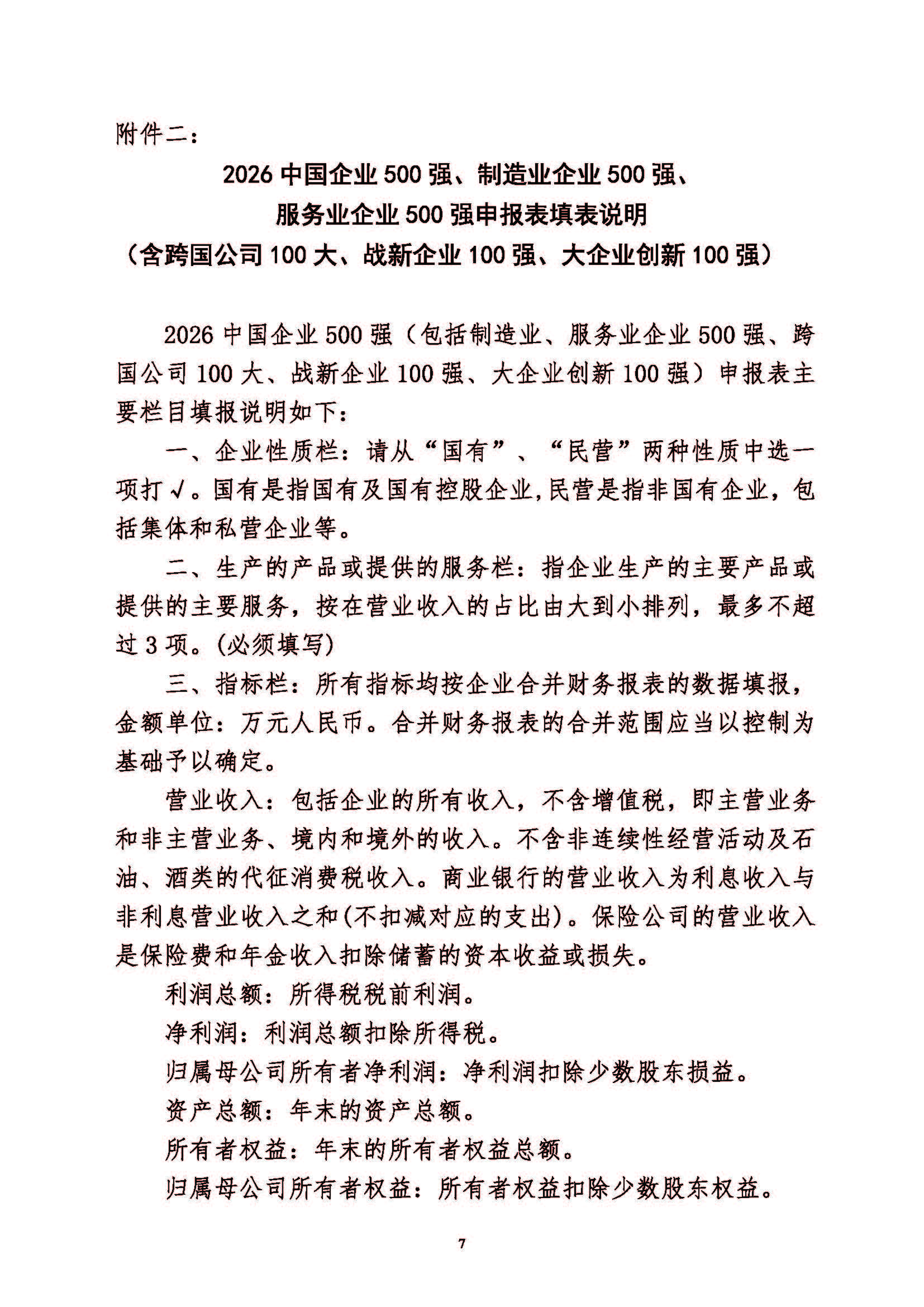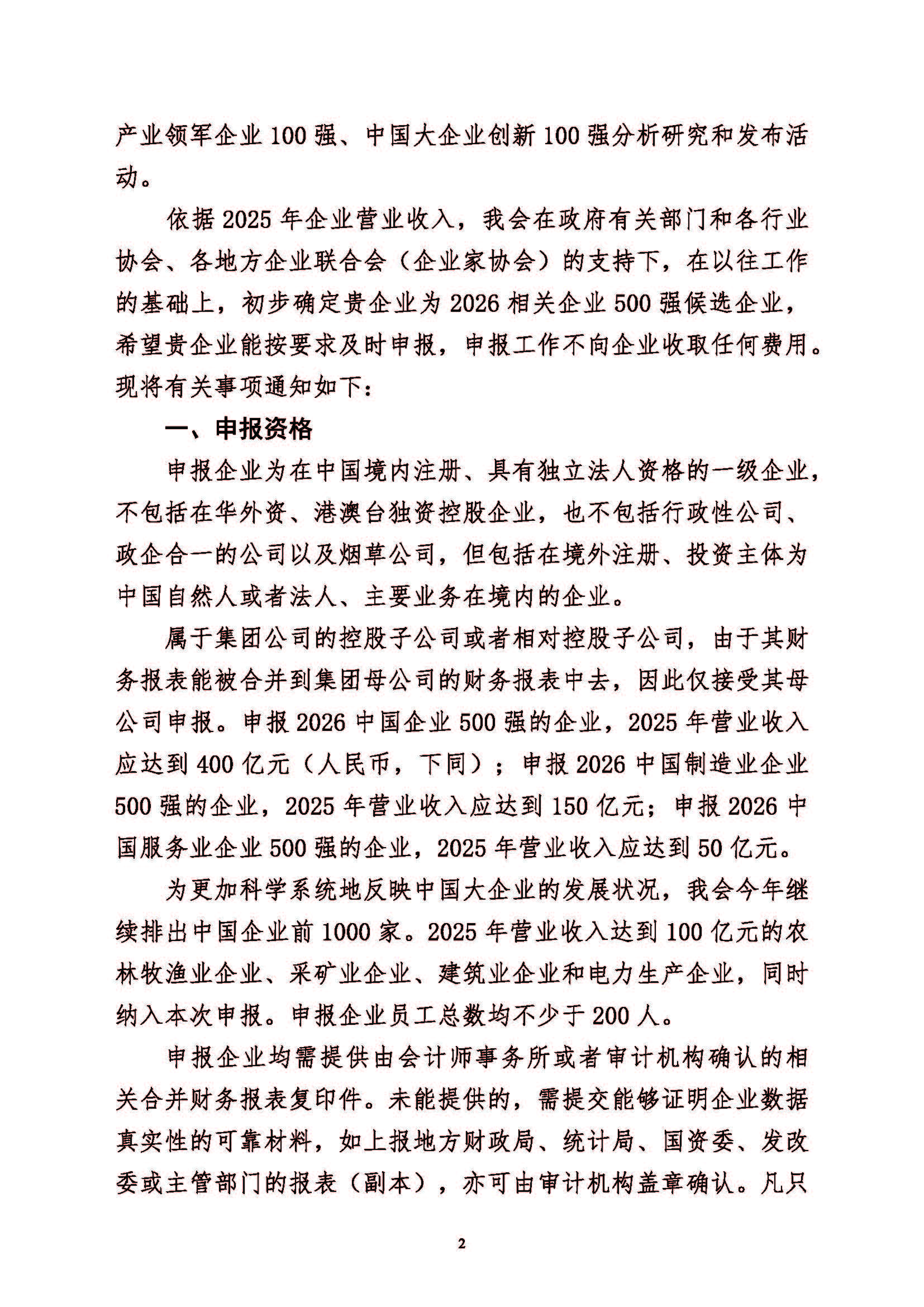 关于申报2026中国企业500强、制造业企业500强、服务业企业500强的通知