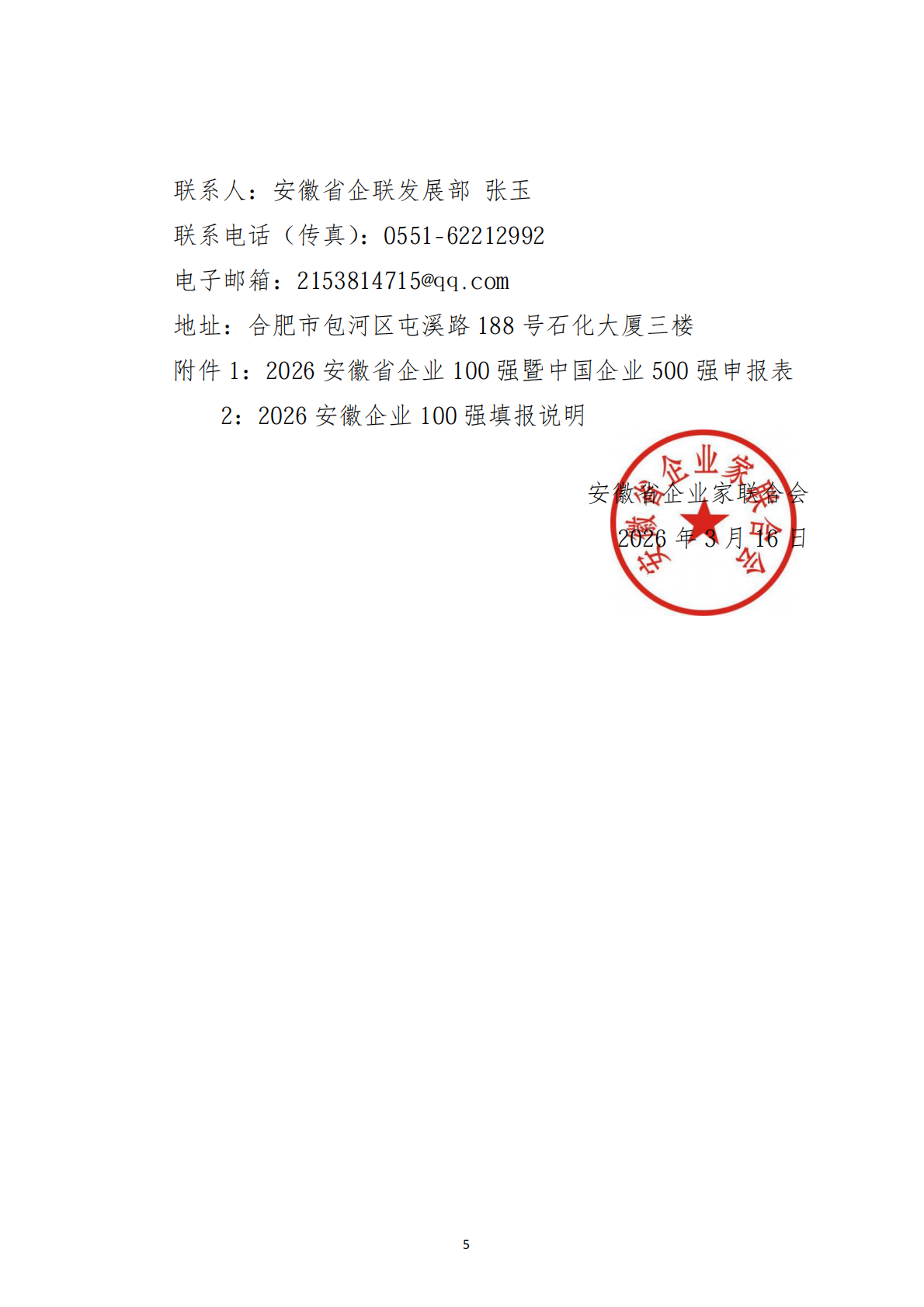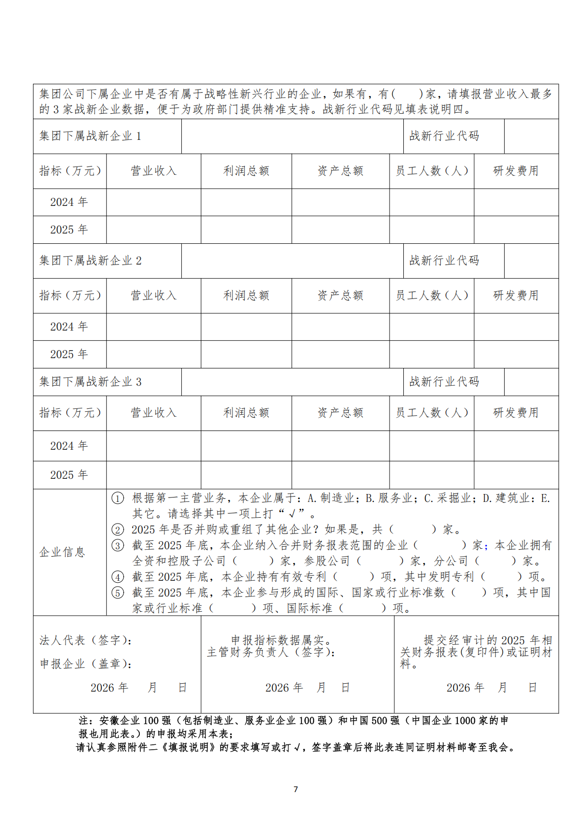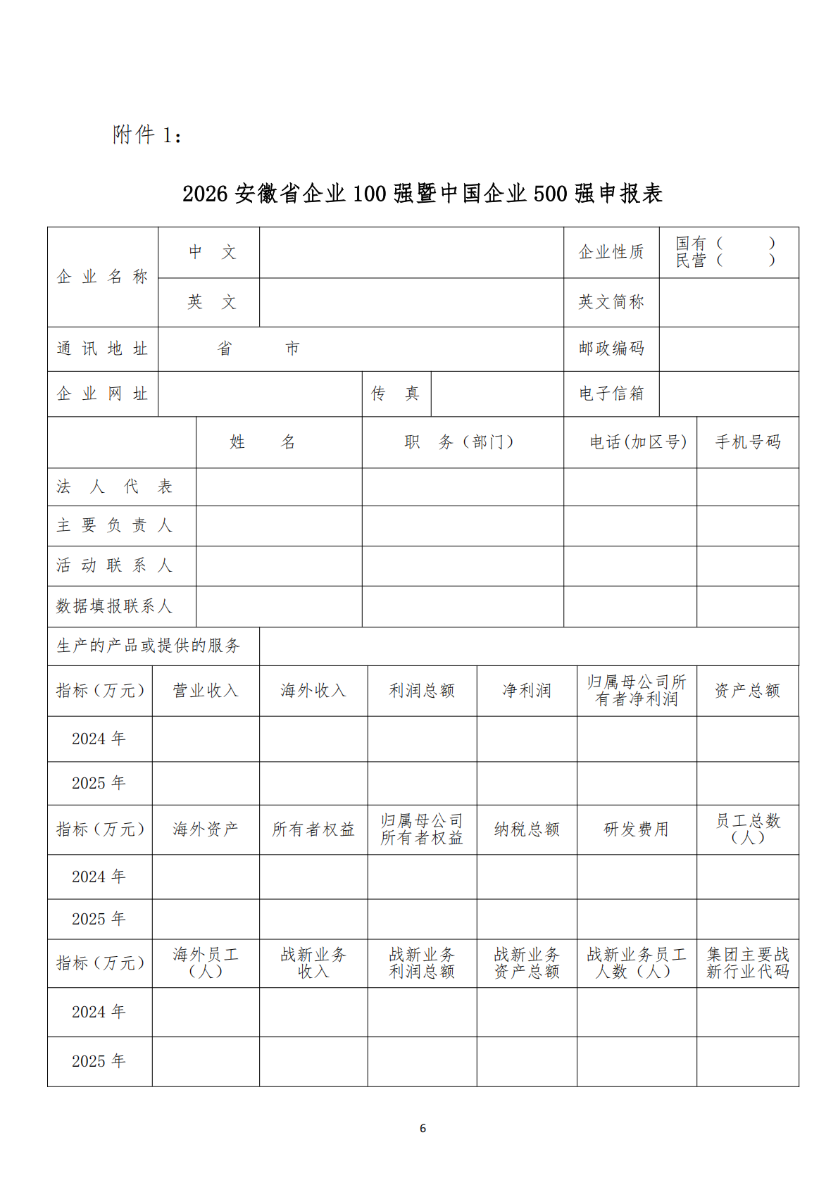 关于组织申报2026安徽企业100强暨制造业企业100强、服务业企业100强的通知
