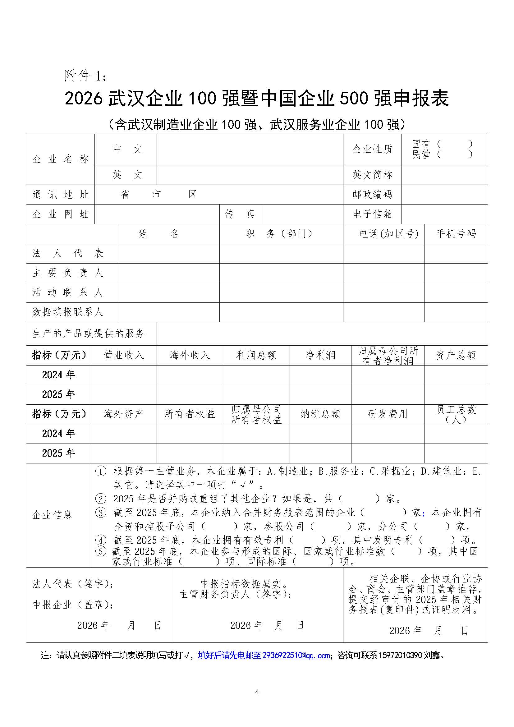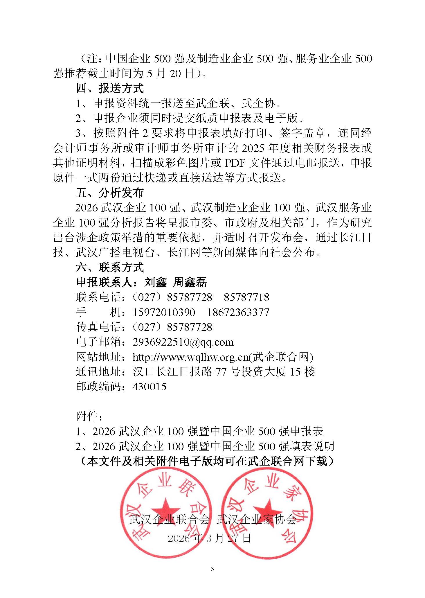 关于开展2026武汉企业100强、武汉制造业企业100强、武汉服务业企业100强分析发布工作的通知.doc