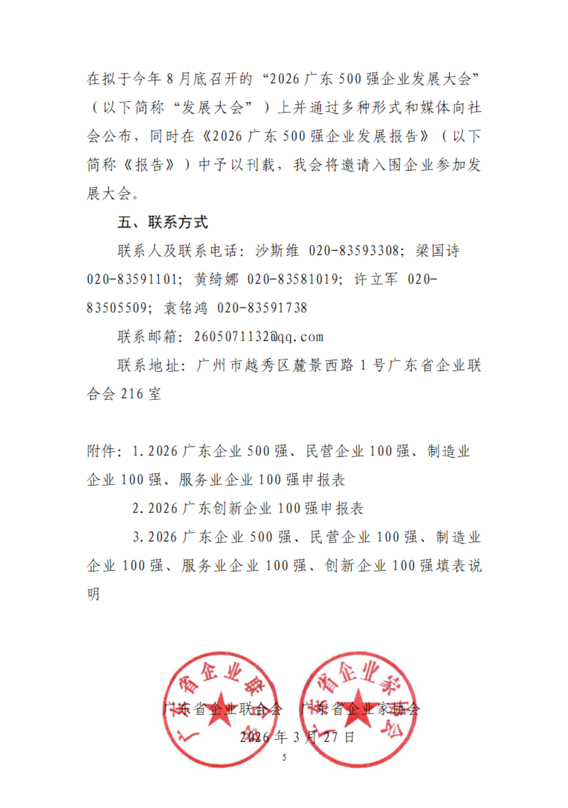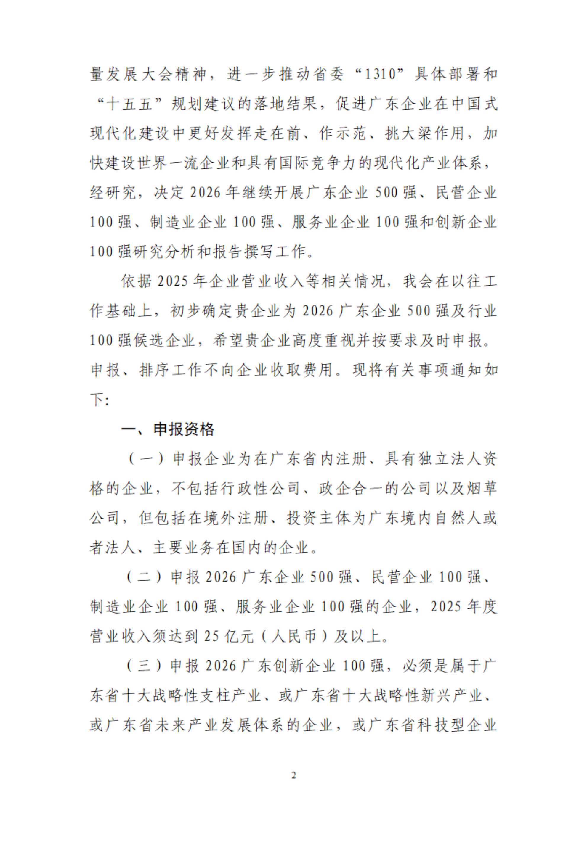 关于申报2026广东企业500强、民营企业100强、制造业企业100强、服务业企业100强、创新企业100强的通知