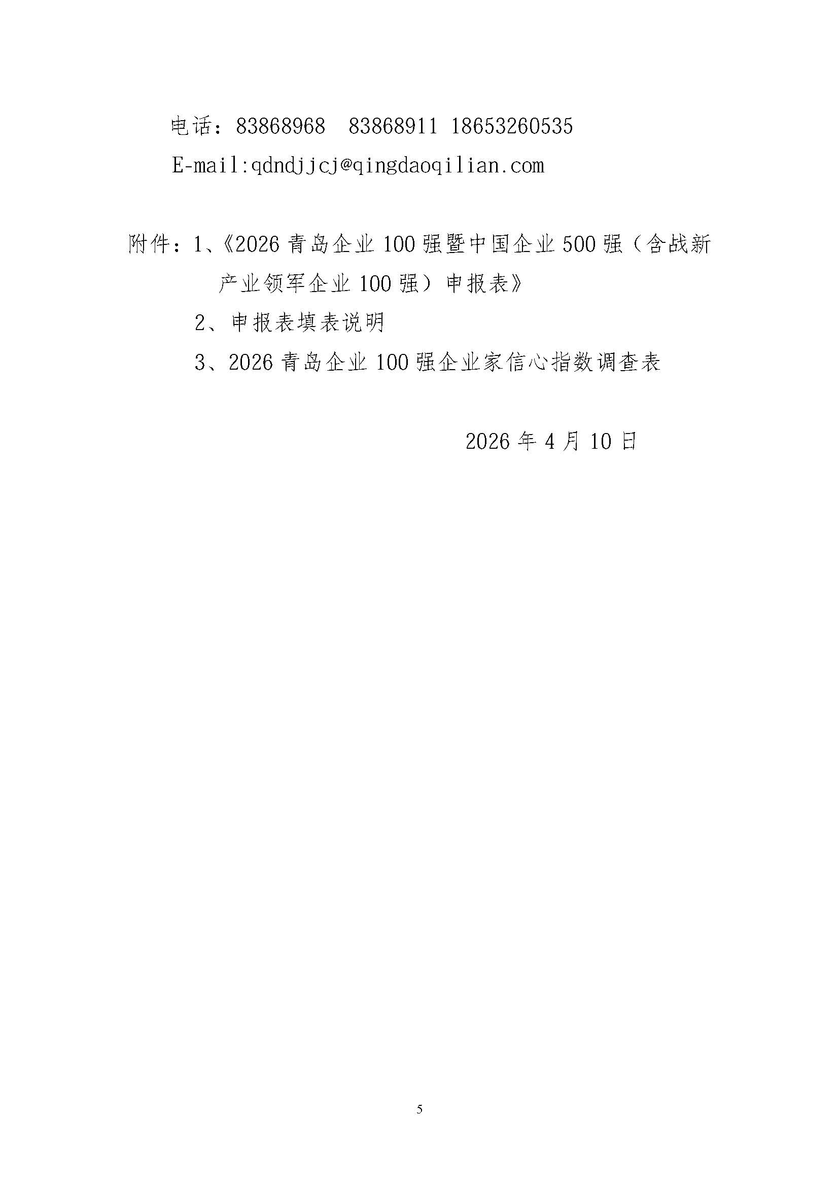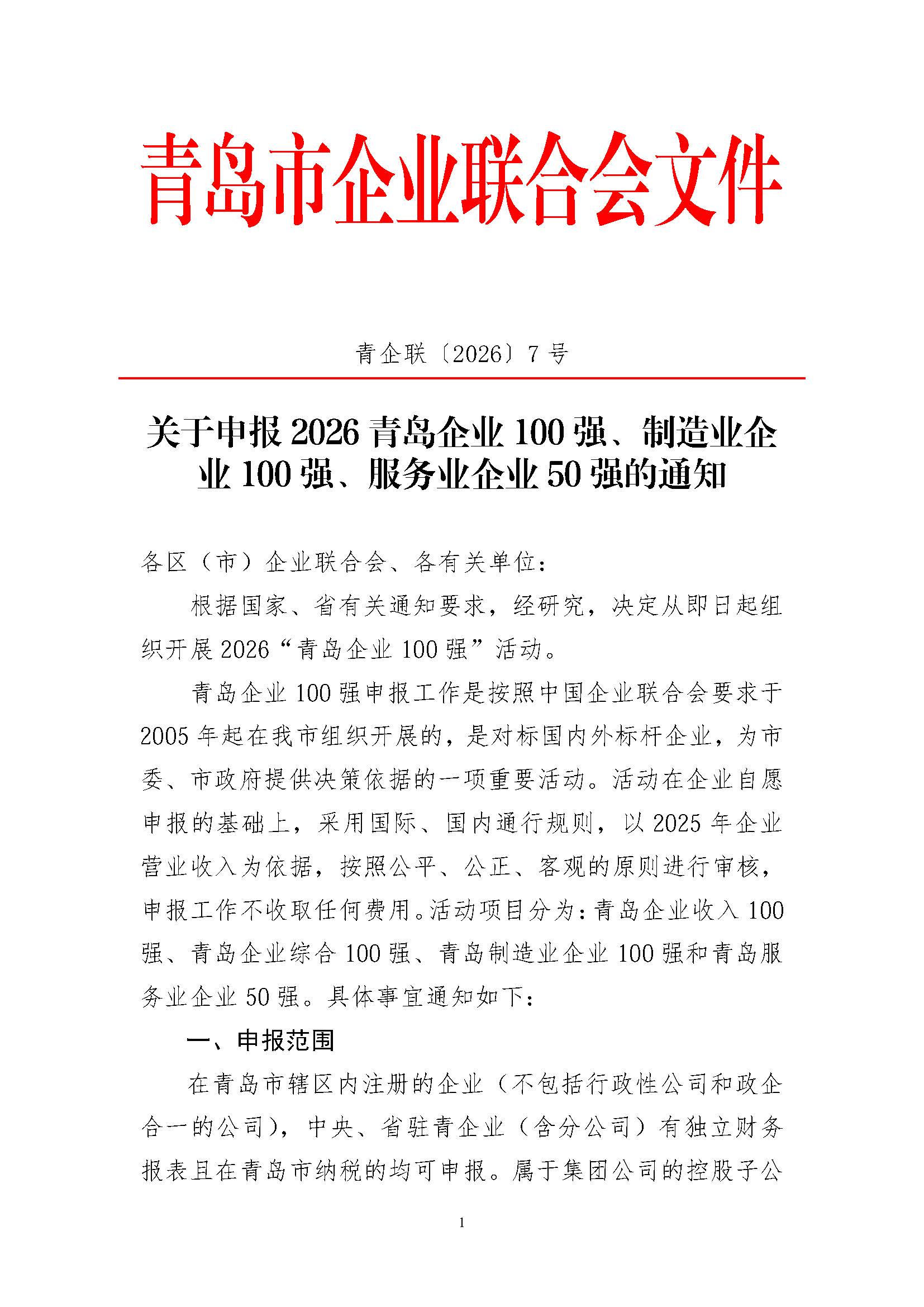 关于申报2026青岛企业100强、制造业企业100强、服务业企业50强的通知