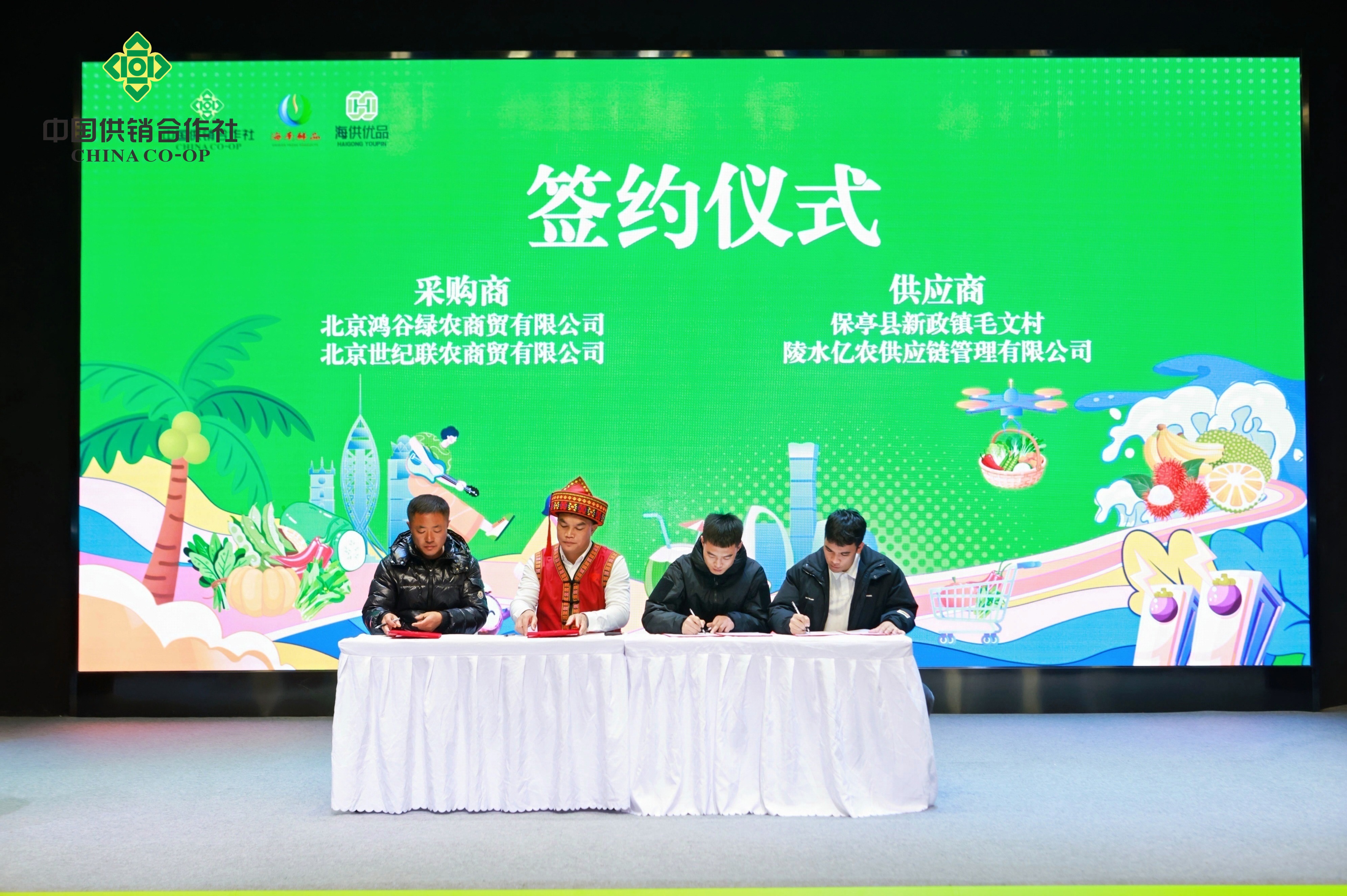 本次活动还邀请了海南省供销合作社定点帮扶单位——保亭黎族苗族自治县新政镇毛文村农户来到现场。今年以来,海南省供销合作社多措并举,紧抓产业帮扶,助力村集体经济提升,帮助来自北纬 18 度的优质农产品搭上“快车通道”入城进京。