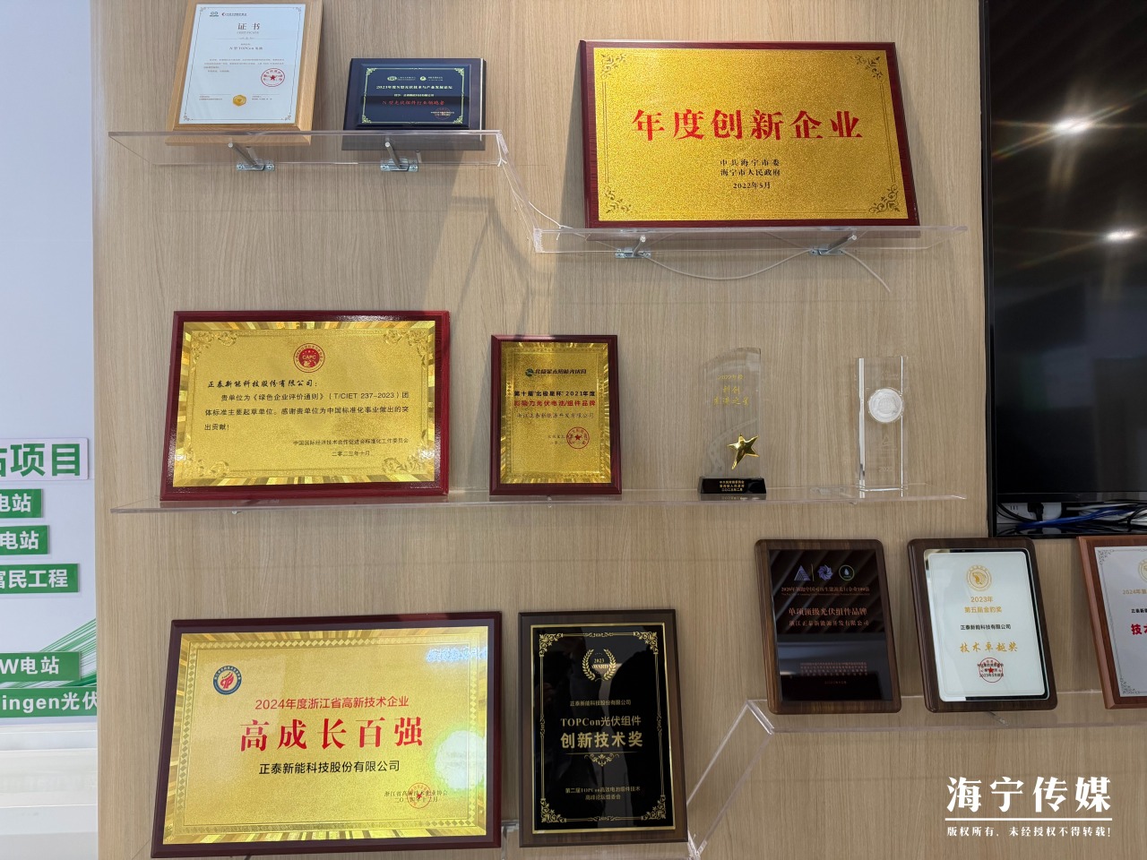 正泰新能的展厅中,一个个奖牌奖杯格外醒目。这些奖项是对正泰新能技术实力的认可。