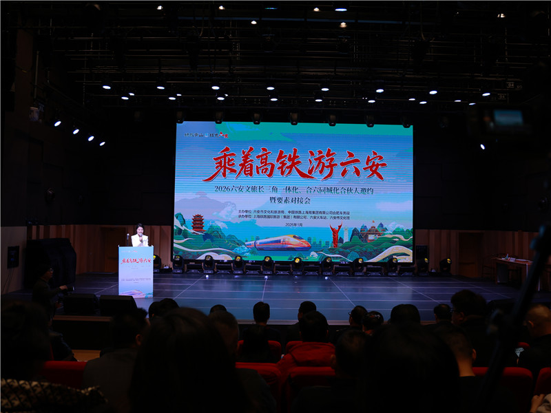 高铁飞驰架金桥,文旅携手向未来。1月9日下午,“乘着高铁游六安”——2026年六安文旅长三角一体化、合六同城化产业要素对接会在六安市文化馆一楼小剧场召开。本次大会以铁路交通为纽带,以要素对接为抓手,以合作共赢为目标,汇聚政企多方力量,共商文旅发展大计,为六安文化旅游业高质量发展注入强劲动能,也标志着六安在推动长三角文旅一体化、深化合六同城化发展进程中迈出了坚实步伐。