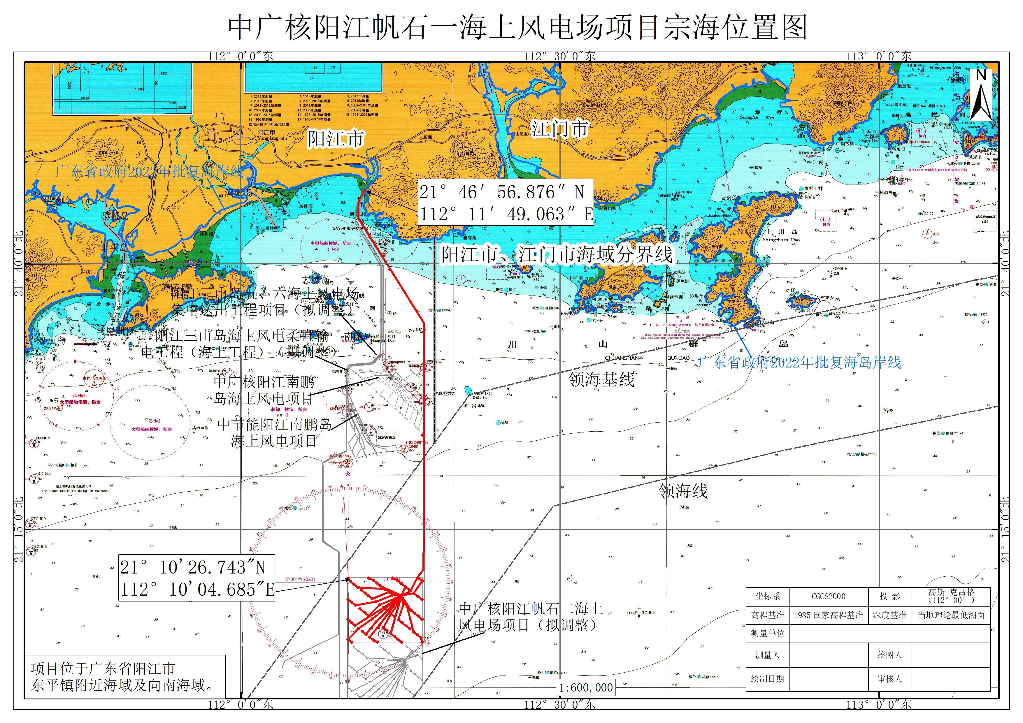 中广核新能源(阳江阳东)有限公司拟申请中广核阳江帆石一海上风电场项目用海变更,根据《中华人民共和国海域使用管理法》《广东省海域使用管理条例》有关规定,对拟用海单位提出的用海申请进行公示,公示期10日,如对所公示用海有异议的,请在公示期内以书面形式向我厅反映。以个人名义提出意见的,签署本人真实姓名及联系方式,以单位名义反映的应加盖本单位印章。