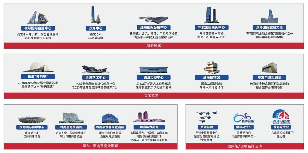【图片说明:45年来华发与珠海共生共荣,超过20多个城市地标及IP活动站着华发身影】