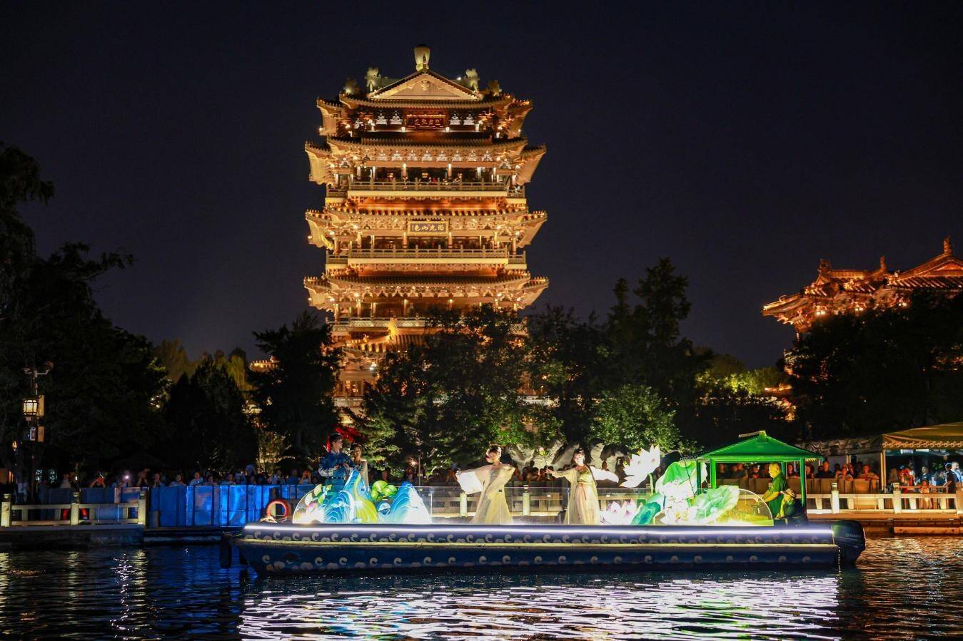 “夜享历下”的画卷从“明湖夜画”展开。夜幕下的大明湖,波光潋滟,超然楼亮灯瞬间金光璀璨,与湖面倒影相映成画。游客可乘画舫泛舟,体验“船行碧波上,人在画中游”的诗意境界,邂逅“夏雨荷”故事中的浪漫情怀。