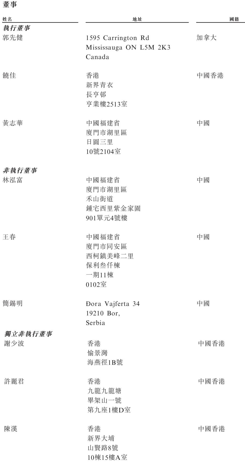 紫金黄金执行董事郭先健、饶佳、黄志华;非执行董事分别为林泓富、王春、简锡明,独立非执行董事分别为谢少波、许丽君、陈汉。