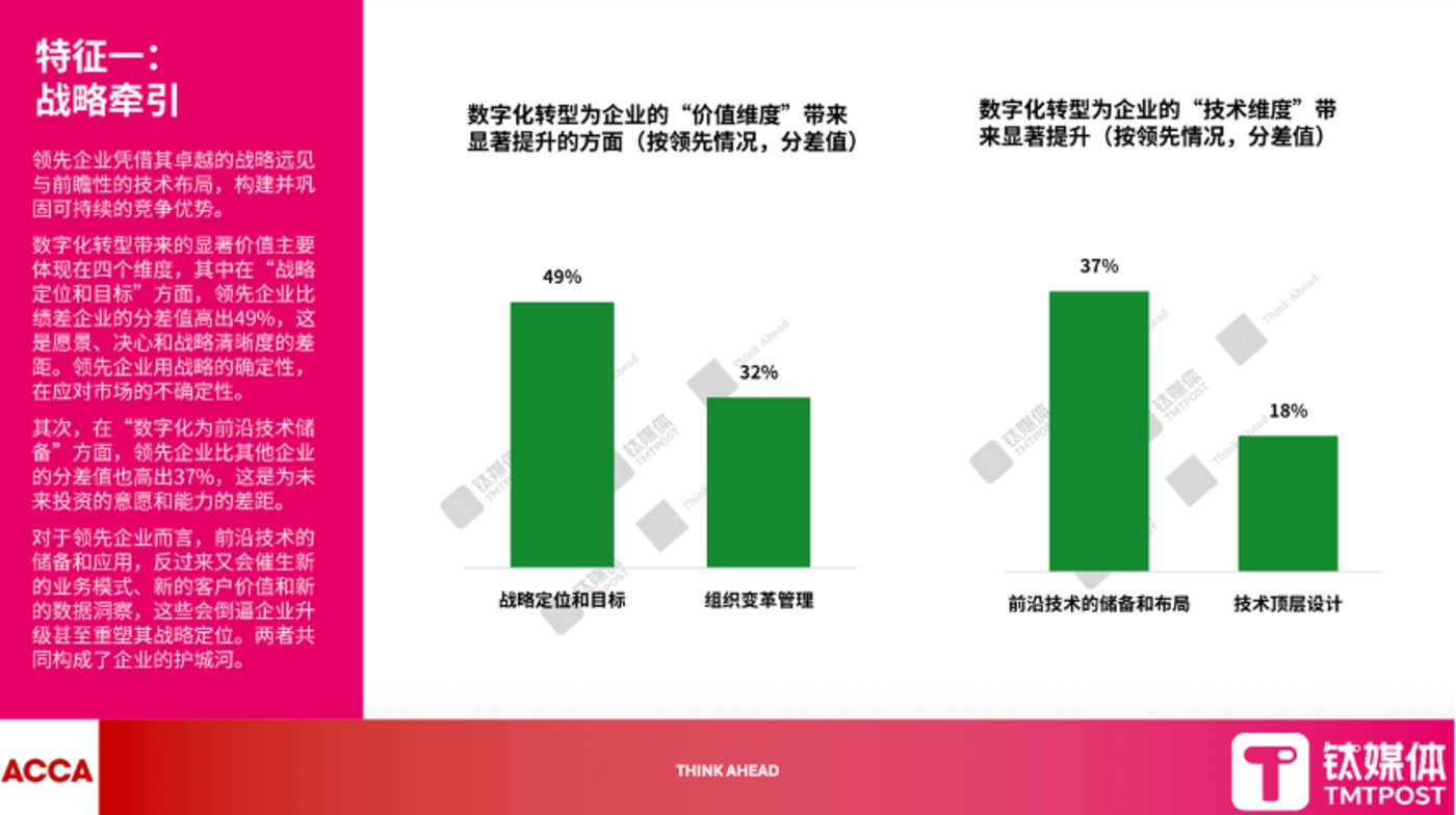 会上,由钛媒体研究院和ACCA共同出品的《数字化转型新范式》(下称《报告》)正式发布,这是该报告连续第四年推出,从过去三年《数字化转型新思》到如今《数字化转型新范式》,报告名称的变化也展现了当前转型进程的变化。此外,今年报告的重要内容是在调研中总结了四大特征,并以对应案例进行了详细拆解。