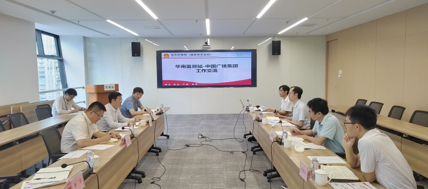 生态环境部华南核与辐射安全监督站(以下简称华南监督站)近日与中国广核集团有限公司(以下简称中广核)开展专题工作交流,华南监督站主要负责人、中广核有关负责人等参加。
