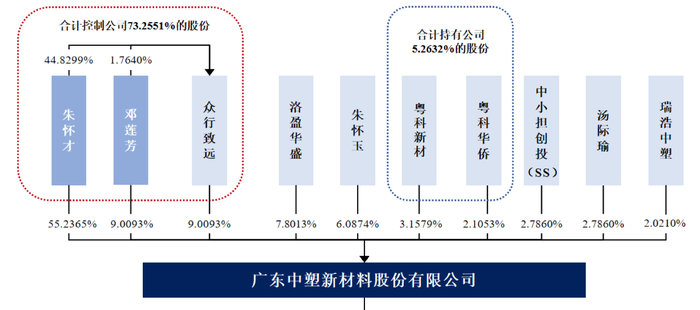 股权结构方面,中塑股份带有明显的“家族企业”特征。公司实际控制人为朱怀才、邓莲芳夫妇,二人合计控制公司73.2551%的股份。此外,朱怀才的胞兄朱怀玉直接持有6.0874%的股份,并与朱怀才夫妇构成法定一致行动关系。朱怀才本人担任公司董事长兼总经理,邓莲芳任董事及资材部长,朱怀玉则担任董事及总经办副总经理。
