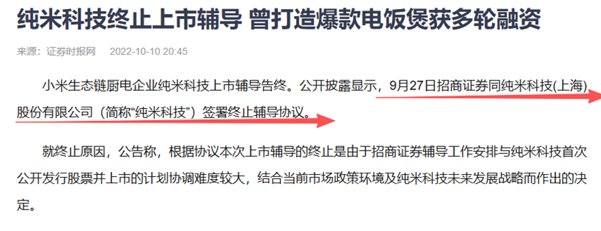 纯米科技首次IPO失败图源:证券时报