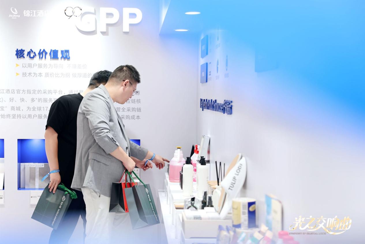 老友欢聚日现场,锦江全球采购平台(GPP)的优质供应链产品首次开放会员参观。其推出的"酒店行业淘宝商城”创新模式,依托不赚差价的运营机制和严格的选品门槛,既帮助降低采购成本,又保障了商品和服务的品质。“我们把供应链里的利润返还给加盟商和消费者,这些举措虽不易被察觉,但相信合作伙伴在后续发展中会逐渐受益。”