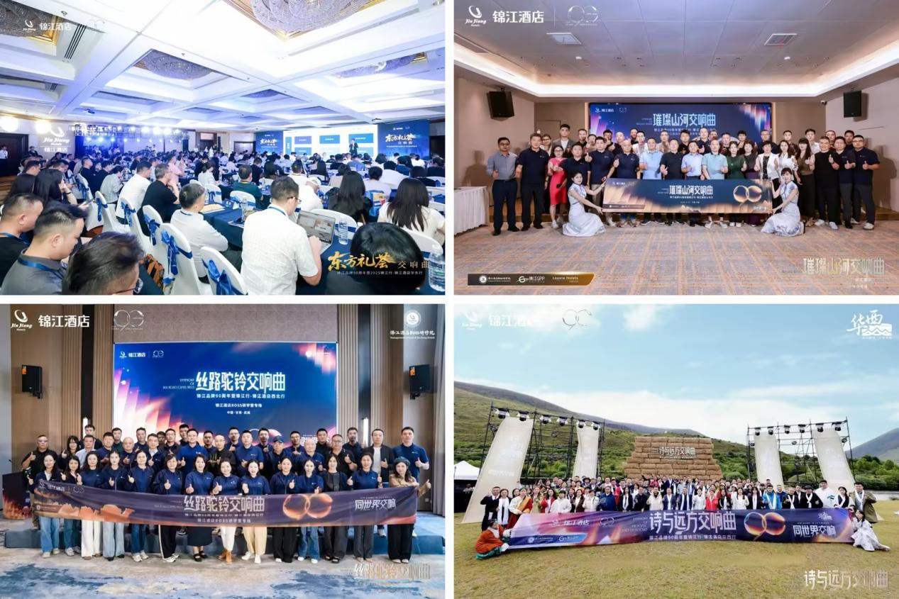 2025锦江行,也因此以“1+6交响曲”的创新形式呈现,并特设区域投资人研学营,通过一线调研、标杆参访、主题研讨与案例剖析,结合当地核心文旅结构特色,提供实战锦囊。在许昌探访胖东来总店,深入解读“用户为本”精益运营方法论;在古丝绸之路重要关隘乌鞘岭的天祝云居酒店,实地感受度假产品在属地文化中的创新融合;走进川西秘境,与行业专家及锦江高管近距离交流……活动得到积极反响,有超百家项目当场签约。