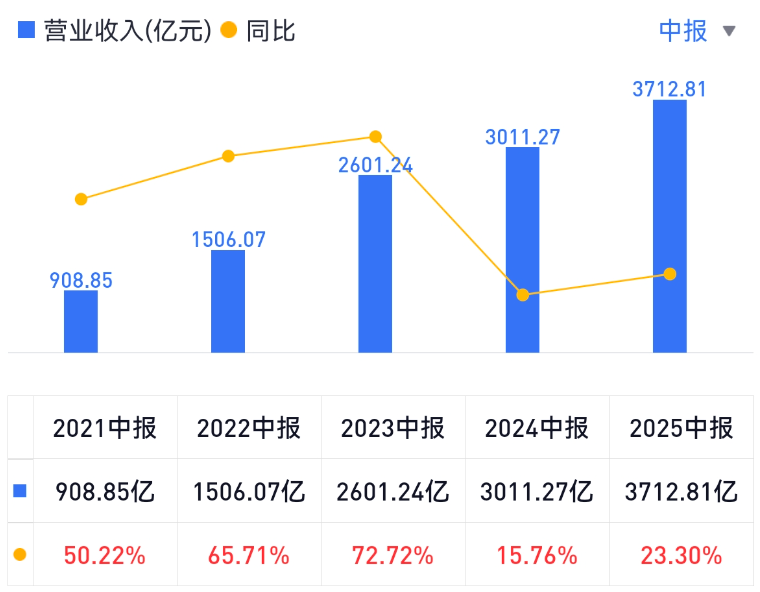 财报显示,比亚迪上半年累计销量为214.6万辆,同比增长33.04%;总营收为3712.81亿元,同比增长23.3%;归母净利润为155.1亿元,同比增长13.79%。