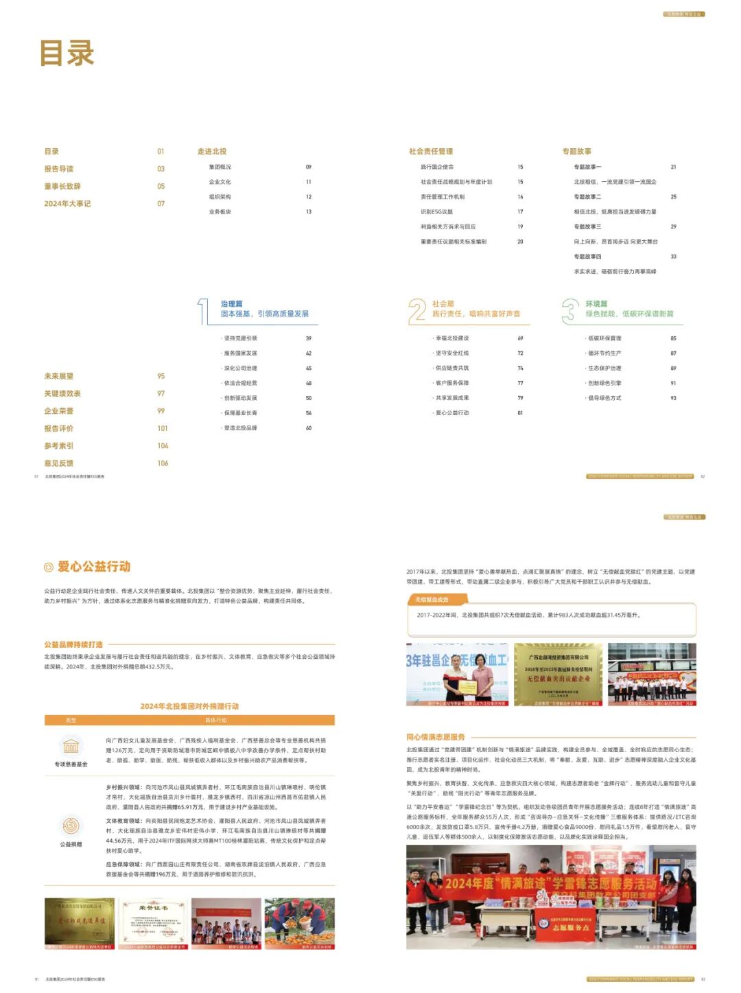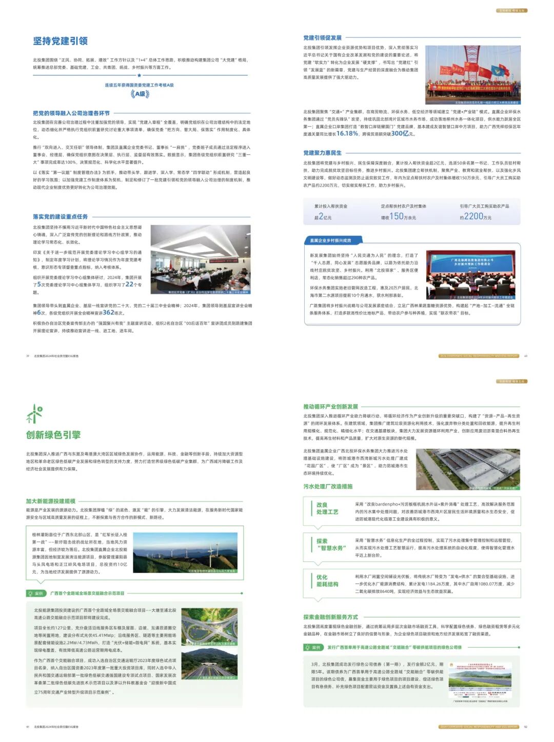 报告系统介绍了北投集团在深化改革、现代治理、科技创新、战略性新兴产业布局、绿色低碳转型、员工关怀、社会公益等多个领域的实践成果。报告还设立“北投相信,一流党建引领一流国企”“相信北投,挺膺担当迸发磅礴力量”“向上向新,昂首阔步迈向更大舞台”“求实求进,砥砺前行奋力再攀高峰”四个责任专题,呈现了北投在加强党的建设、服务国家和自治区发展战略、发展新质生产力、拓展攻坚等方面取得的积极成效。