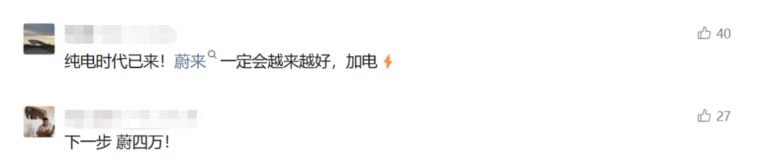 部分网友评论称“纯电时代已来”“十年纯电老兵冲冲冲”。