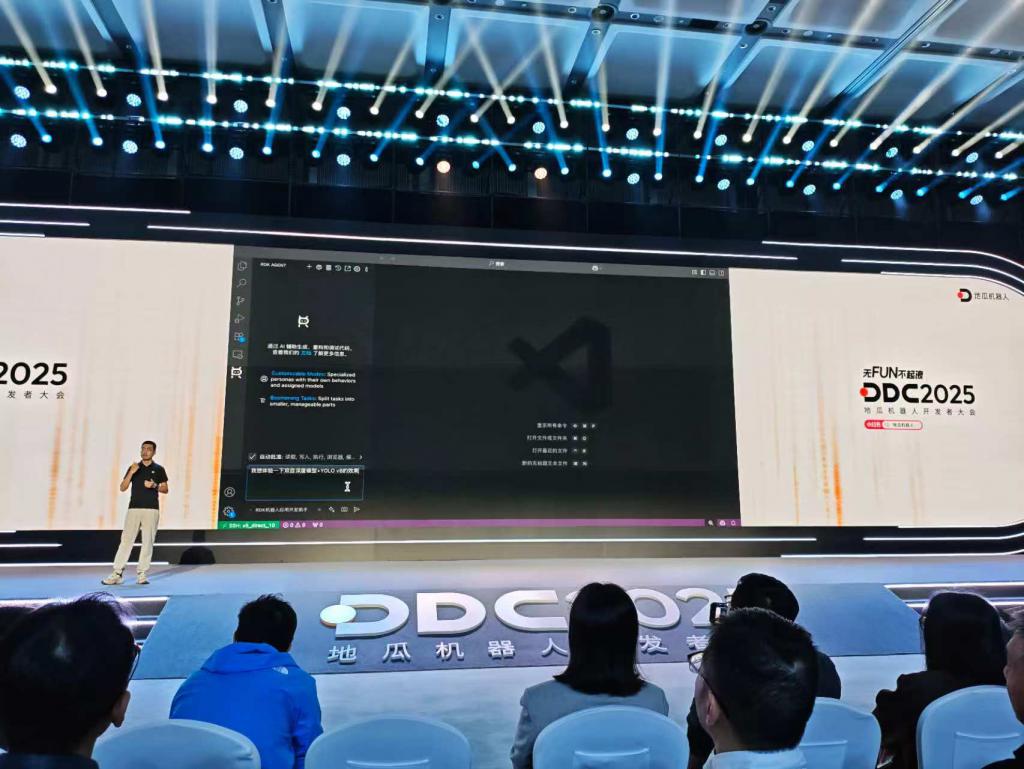 DDC 2025 主题演讲,地瓜机器人开发者生态副总裁胡春旭就现场秀了一把,Coding Show 环节也变成了 Living Show,「因为不需要写代码」。