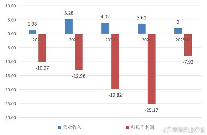 2021-2025H1 文远知行 营业收入与归母净利润变化(单位:亿元人民币),数据来源: 文远知行 财报