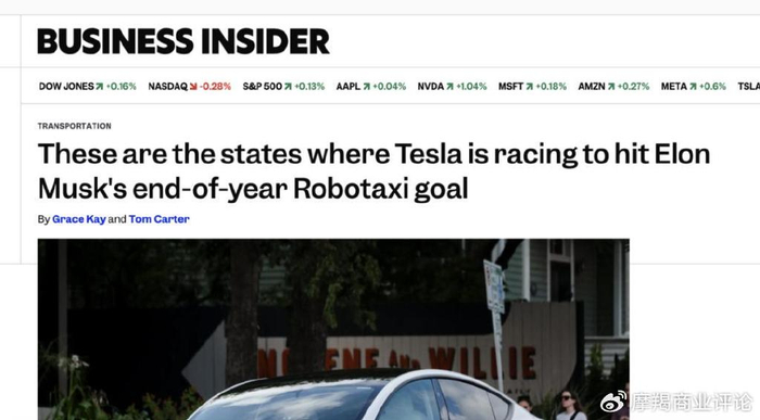 外媒报道 特斯拉 正在美国多州加速推进Robotaxi计划,来源:《商业内幕》