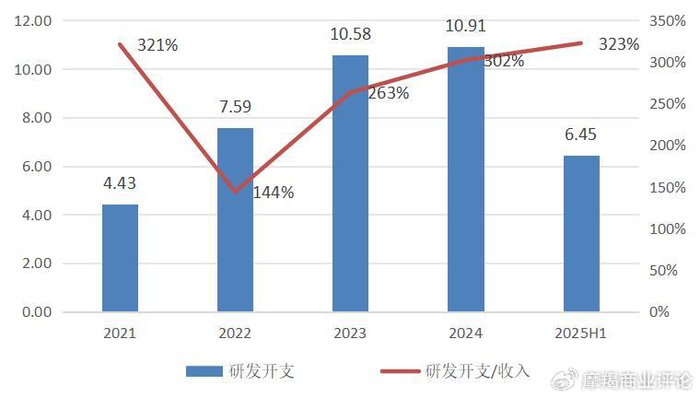 小马智行 从2021年到2025年上半年的研发开支总和达到7.84亿美元,折合人民币约55.64亿元,几乎赶上净亏损的总和,且研发开支与收入的比重达到303%。