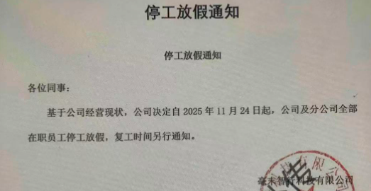 基于公司经营现状,公司决定自2025年1月24日起,公司及分公司全部在职员工停工放假,复工时间另行通知。