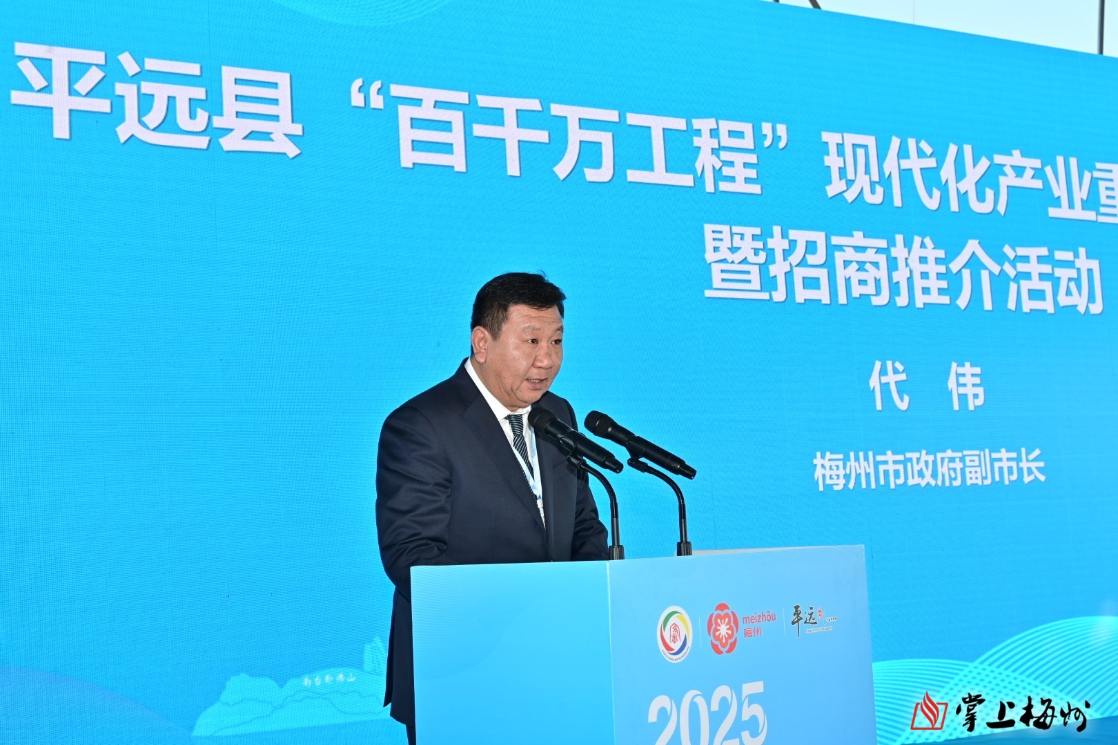 代伟代表市委、市政府,向各位乡梓楷模致以最亲切的问候,向关注平远的各位企业家朋友表示最热烈的欢迎。他说,当前,梅州正全力深入推进“百千万工程”,平远正处于发展的黄金时期,有着广阔的发展空间、无限的可能。期待大家把资金、技术、管理模式带进来,一起补链强链、抱团发展,共同参与城市建设到乡村振兴,从民生改善到环境优化的每一步发展,携手擦亮特色新名片,让梅州平远更具竞争力。