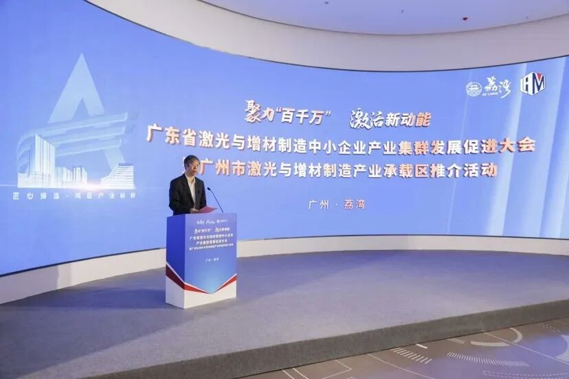 11月24日,广东省激光与增材制造中小企业产业集群发展促进大会暨广州市激光与增材制造产业承载区推介活动在广州荔湾海龙围科创区龙溪大道园区举行。当天,在省、市、区有关负责人,中国科学院院士冷劲松,以及百余位产业代表等的共同见证下,“广州市激光与增材制造产业园”LOGO点亮,正式开园。
