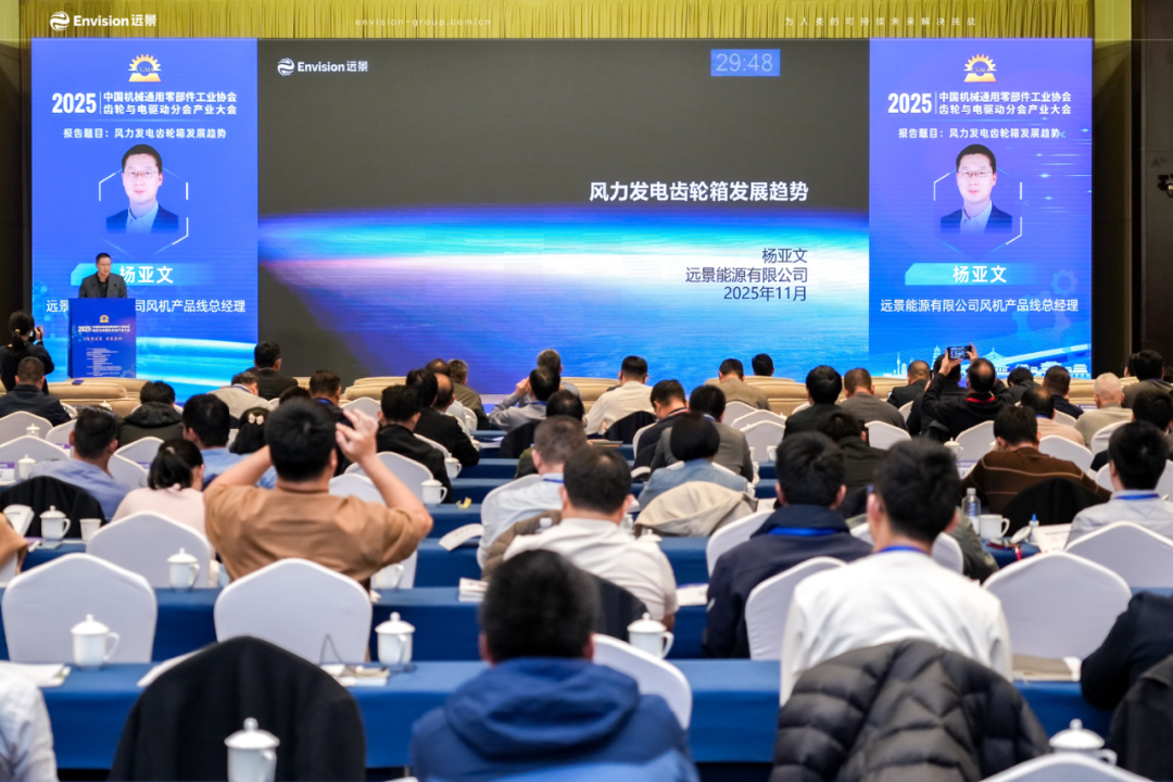 近日,2025中国齿轮产业大会在西安成功召开,来自新能源汽车、机器人、无人机、轨道交通等行业的齿轮研发制造上下游500余位企业代表、行业专家,深入探讨了齿轮箱在相关细分行业的前沿应用。远景能源风机产品线总经理杨亚文在大会主旨演讲中表示,在新一轮国家自主贡献目标的激励下,以风电齿轮箱为代表的新能源装备制造业正迎来前所未有的重大发展机遇,可靠性将成为未来产品核心竞争优势。远景基于这一判断创新提出“七维体系”系统化研究,高效解决了风机大型化和集成化带来的齿轮箱技术挑战。迄今为止,远景自研自制齿轮箱(EnG)全球累计交付量已突破1万台,扎根于全球12个国家、520多座风场,整体失效率远低于行业最低水平。