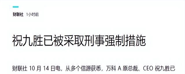 就这会儿功夫,10月14号又传来祝九胜被采取刑事强制措施。说不准哦,这事对万科的冲击比辛杰辞职还大。祝九胜以前在建行深圳分行干了快20年,2012年跳到万科,楼市正火的时候,这位人脉够硬,大家都认他能化解复杂融资局。一月份他已经把总裁和CEO全部辞了,当时朋友圈还发了一句“人在这儿”,现在看起来像是临别留信。有深圳地产同行讲,春节后没在任何饭局见过他,已经觉得不太对劲。