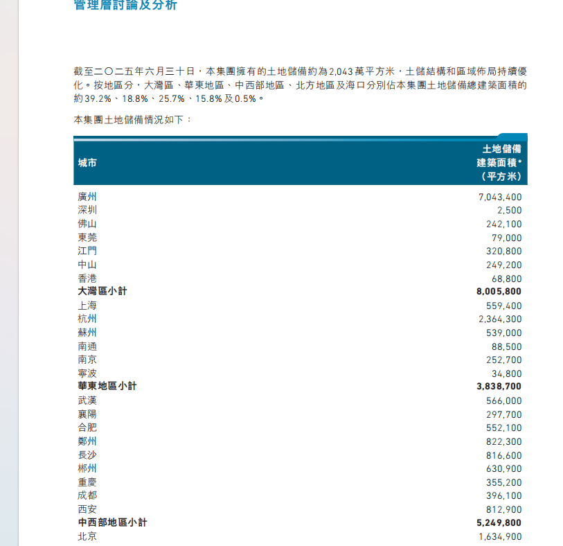 根据2025半年报披露,越秀在北京的土储规模已经超越上海和深圳,是四个一线城市里,土储规模仅次于大本营广州的城市。