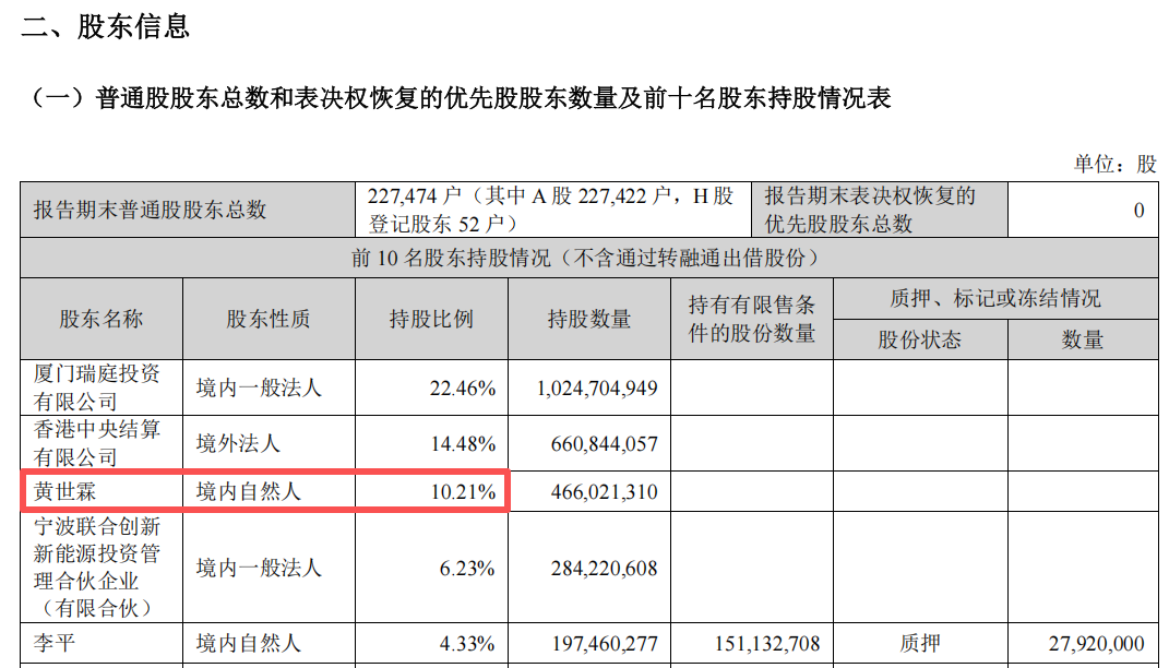 即上述交易完成后,黄世霖仍是 宁德时代 的第三大股东,直接持股比例为9.21%。