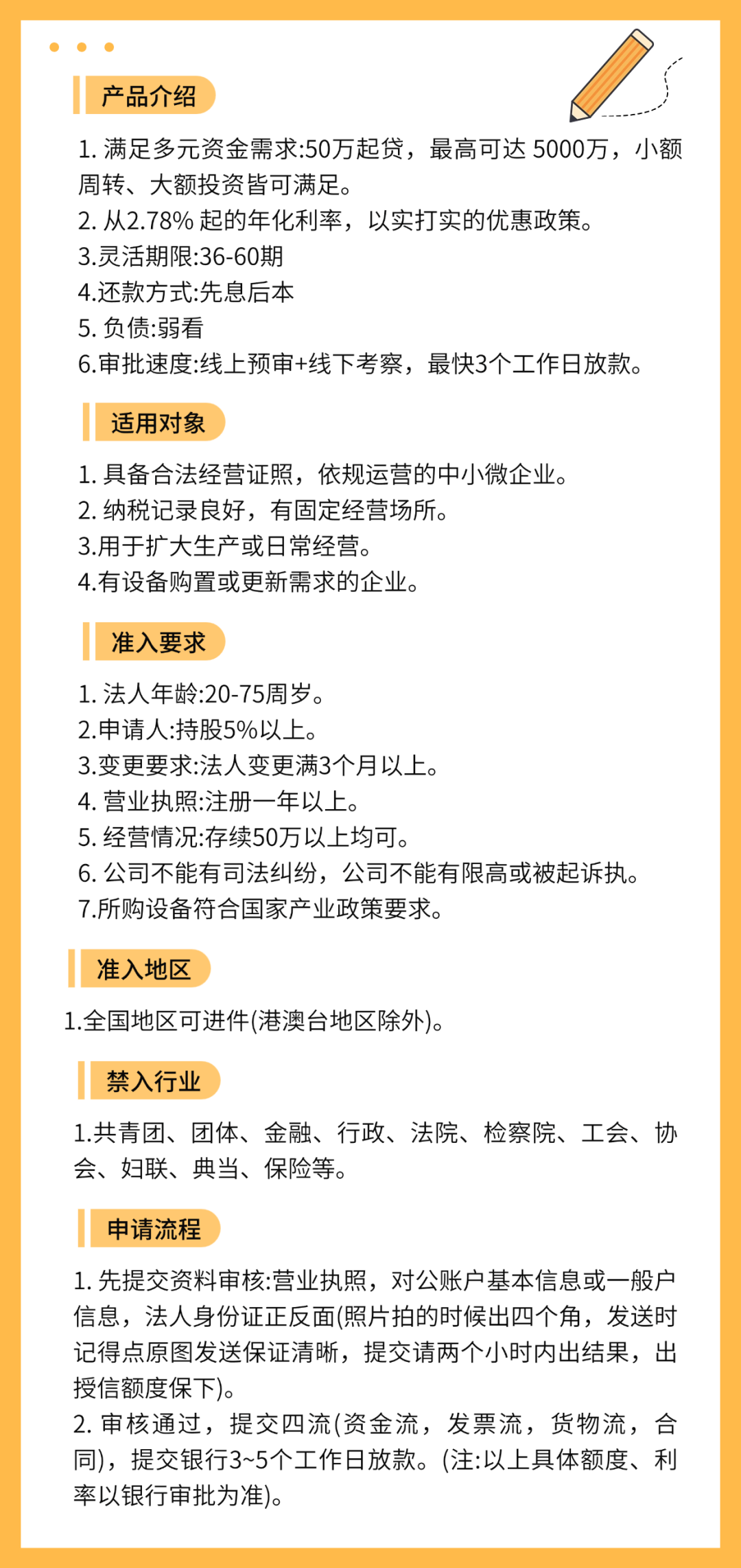 行业范围:制造业、商贸流通、物流运输、科技创新等实体经济领域;