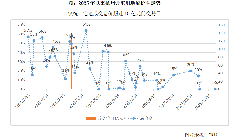 2025年以来,在杭州宅地成交总价超30亿元的成交日中,首次出现全部地块以底价成交的情况