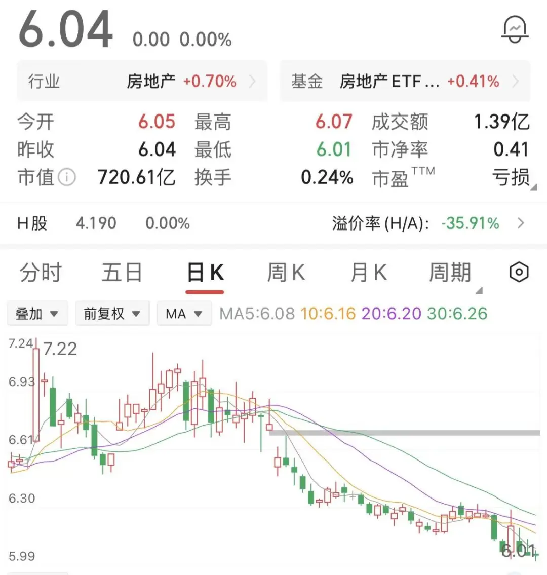 当天,万科A(000002.SZ)报收于6.04元,创出年内收盘新低,与年内最低价6.02元仅差两分钱。