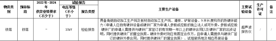 针对铁塔标段,资格预审申请文件中必须提供相关产品报告扫描件,报告需包含以下数据:零部件尺寸、焊缝外观质量、焊缝内部质量三个数据。无论试验报告是否已参加核实,均须提供包含上述数据的完整版的试验报告扫描件。若申请人未提供满足资格预审文件要求的试验报告扫描件,在资格预审评审阶段将会对申请人带来不利影响。但相关支持证明文件扫描件的时间不受上述时间限制,且为非否决项。