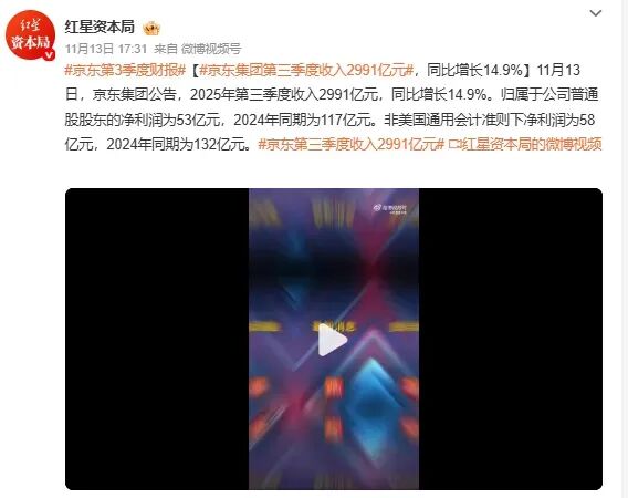 2025年三季度财报给出了答案。 京东 营收2991亿,同比涨了14.9%,但净利润只有53亿,比去年同期的117亿少了一半还多。