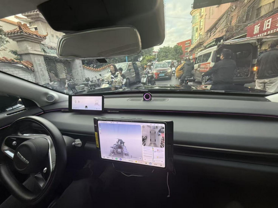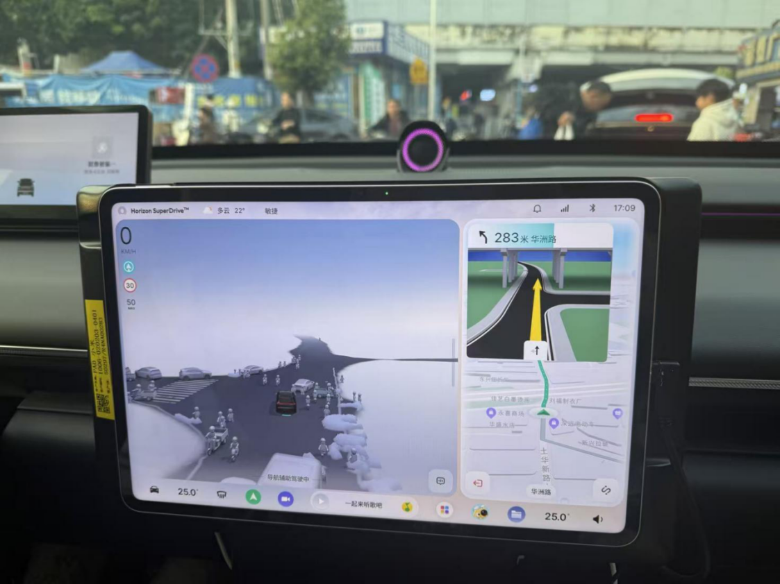 特别值得一提的是,基于征程6P强大的算力,以及一段式端到端算法的低延时能力,地平线HSD的HMI渲染达到了3A级实时的程度。在车载屏幕上,我能实时看到HSD系统对周边路况的还原,除了电瓶车、三轮车、大货车、泥头车等道路参与者以及轨迹外,就连出租车上下客这样的临时状态也能被还原成“乐高小人”,颇具拟真感和动画感,这体现出地平线HSD对真实环境的精准快速感知能力,让我对系统的工作状况与实时路况更有底气、更加安心。