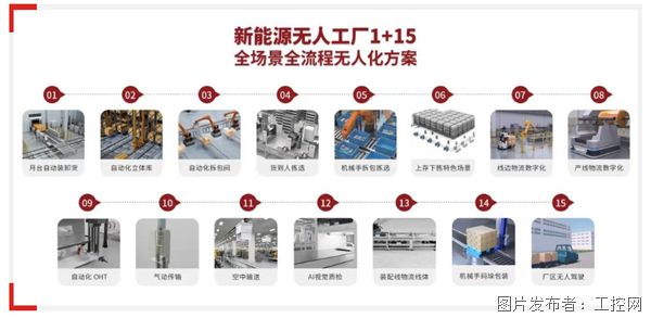 磅旗科技以技术深耕为底,通过自主研发的工业垂类AI小模型数字底座、LDS+ADS、MOM制造管理无人化协同系统等创新技术,打造新能源行业首套“1+15”全场景全流程无人化方案,涵盖物流侧月台自动装卸货、辅料拆包间自动拆包、模组线边仓上存下拣到生产侧全自动OHT系统、空中输送、AI视觉检测、高速滚轮/磁浮输送线体系统等以及15大标准场景,全面赋能电池制造企业提升效率、降低成本、保障品质,助力行业全面提升生产线自动化、协作效率与智能决策能力。
