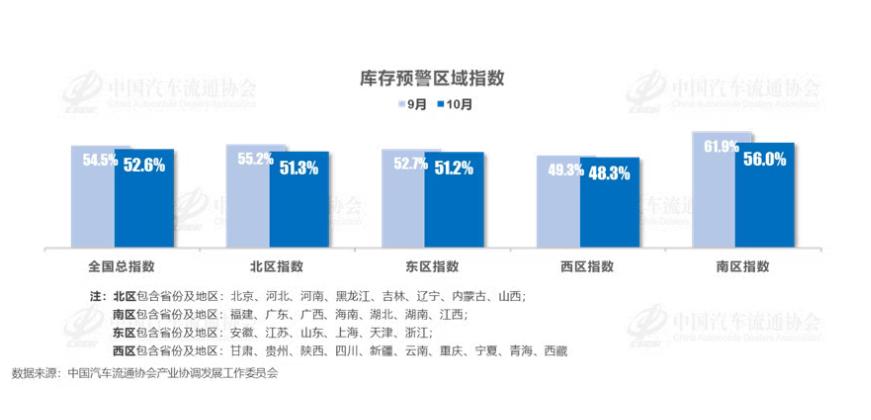 从区域指数情况看:10月全国总指数为52.6%,北区指数为51.3%,东区指数为51.2%,西区指数为48.3%,南区指数为56.0%。