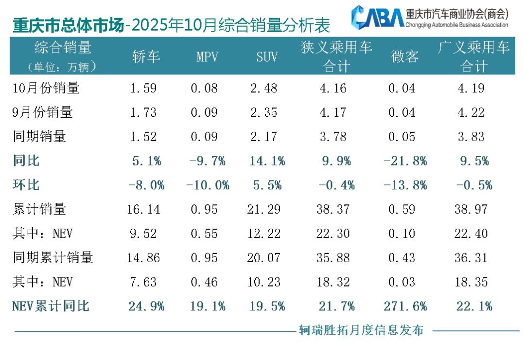 从数据上看,重庆车市10月份销量同比增长、环比下跌,基本符合“金九银十”的市场预期。
