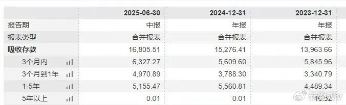 值得注意的是,截至2025年6月末,在 南京银行 超万亿规模的金融投资组合中(包含公允价值计量金融资产、债权投资及其他债权投资),1-5年期限5245亿,5年以上3987亿,二者合计占比超过七成;而负债端一年以内短期存款占比又超65%,形成典型的“短借长投”期限错配格局。
