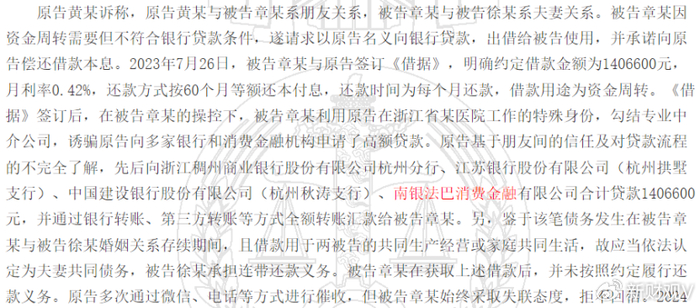 更值得警惕的是,南银法巴还存在违规转贷情况。所谓转贷,即是那些自身征信情况通不过贷款机构审核的人(实际用款人),由其他征信记录良好的人或中介机构(中间人)借款出来再转借给实际用款人,由实际用款人后续履行还款付息义务。但这类实际用款人本身就是征信风险较高的人群,还款能力相对较弱,后续一旦出现违约,便会形成连锁反应,导致中间人向金融机构的贷款违约。在中国裁判文书网上,案号(2025)豫1621民初4739号、(2024)浙0102民初20684号的裁判书均显示,部分涉案资金系由中间人向南银法巴转贷而来,最终却因实际用款人违约而导致了法律纠纷。