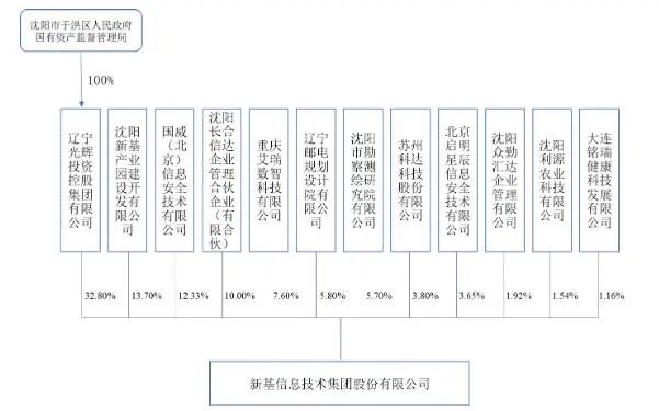 公开资料显示,新基集团成立于2022年4月25日,第一大股东为辽宁光辉投资控股集团有限公司,持股比例为32.80%,由沈阳市于洪区人民政府国有资产监督管理局全资控股。新基集团股权结构分散且股东间无一致行动安排,无单一股东能控制公司决策,因此该集团无控股股东及实际控制人。