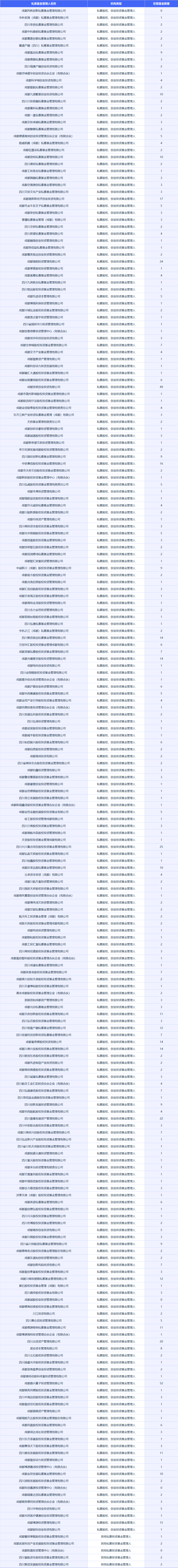 附:截至2025年12月,注册在成都的私募股权、创业投资基金管理人,及其他私募投资基金管理人的名单↓